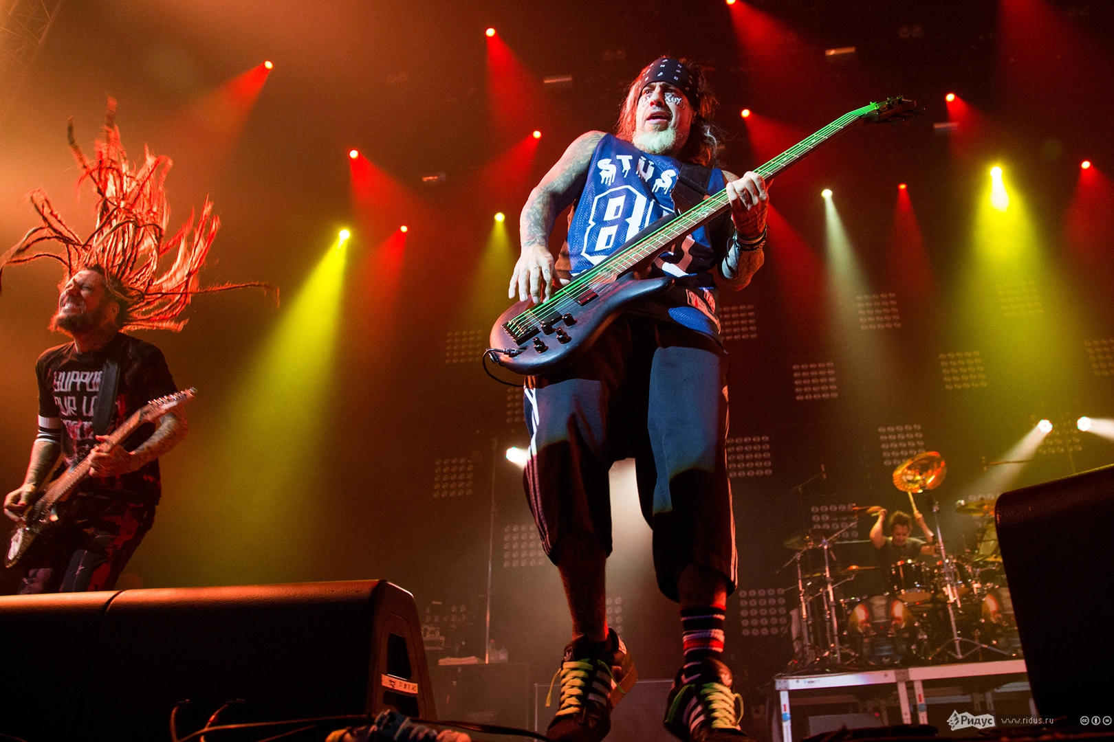 Удивительно, но звук на выступлении американских металистов был похуже, чем у их коллег из Бразилии. Вот он, человеческий фактор. Аппарат – тот же, «звукарь» - другой. Впрочем, разница была некритичной. Полтора часа пролетели незаметно. Казалось, только начали, и вот уже Джонатан Дэвис отыграл на волынке «Shoots and ladders» и начал прощаться с публикой.