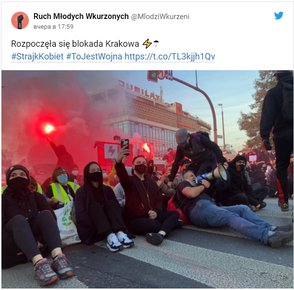 Как сообщает «Русская служба Би-би-си», накануне митингующие перекрыли дороги в 50 польских городах. Автомобилисты по всей стране останавливали транспортные средства, не доехав до пункта назначения, а пешеходы просто сели на дороге.