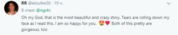 Невероятно. Я уже смирилась с тем, что его нет в живых, но вот он тут сидит рядом со мной и мурлычет как ни в чем не бывало,написала она в Twitter.