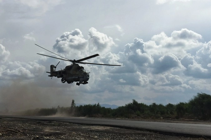 Вертолет Ми-24 упал на бок во время посадки в Белоруссии