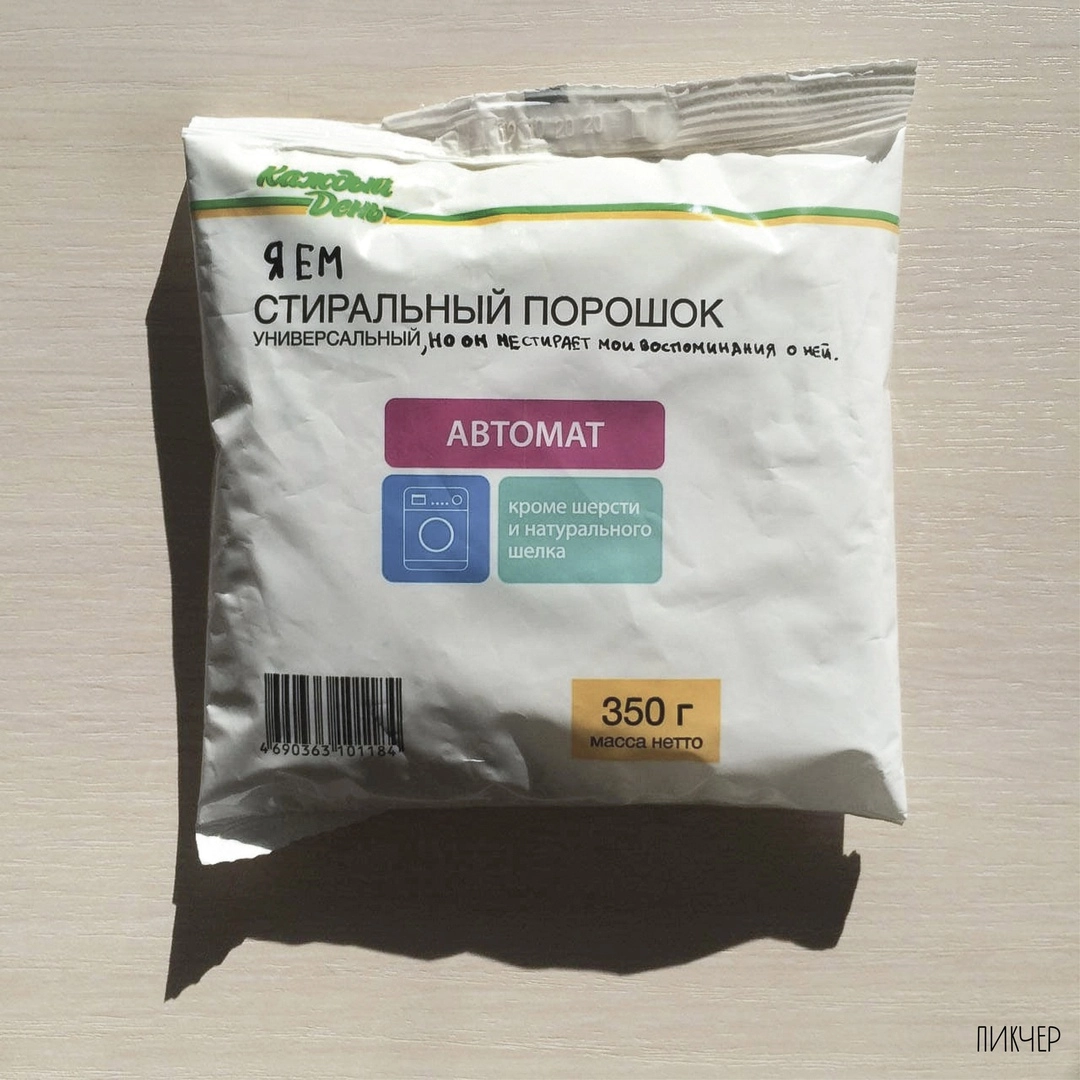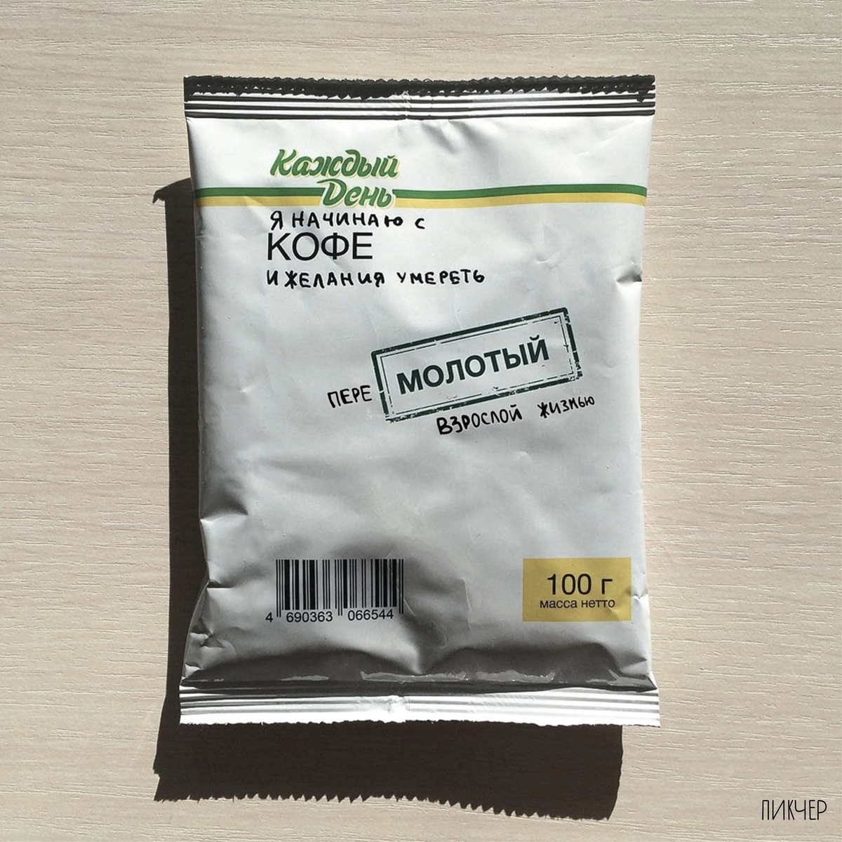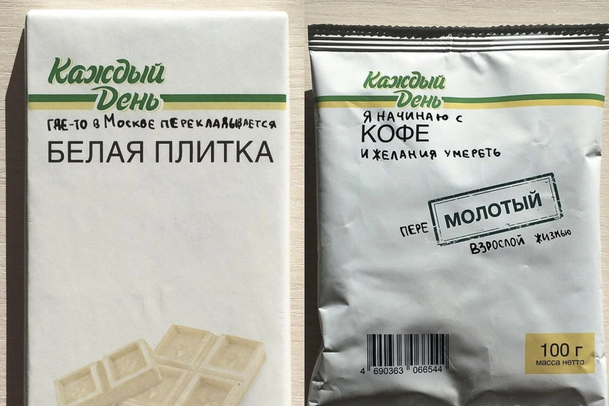 Команда рекламного агентства «Пикчер» представила серию работ под названием «Весь мир — Ашан, а ты в нём Каждый день», в которых упаковки известного бренда превратились в грустные цитаты, заставляющие задуматься о смысле бытия.