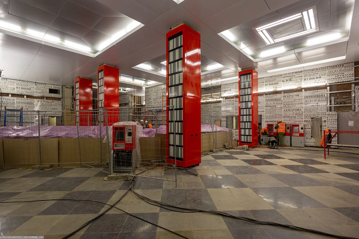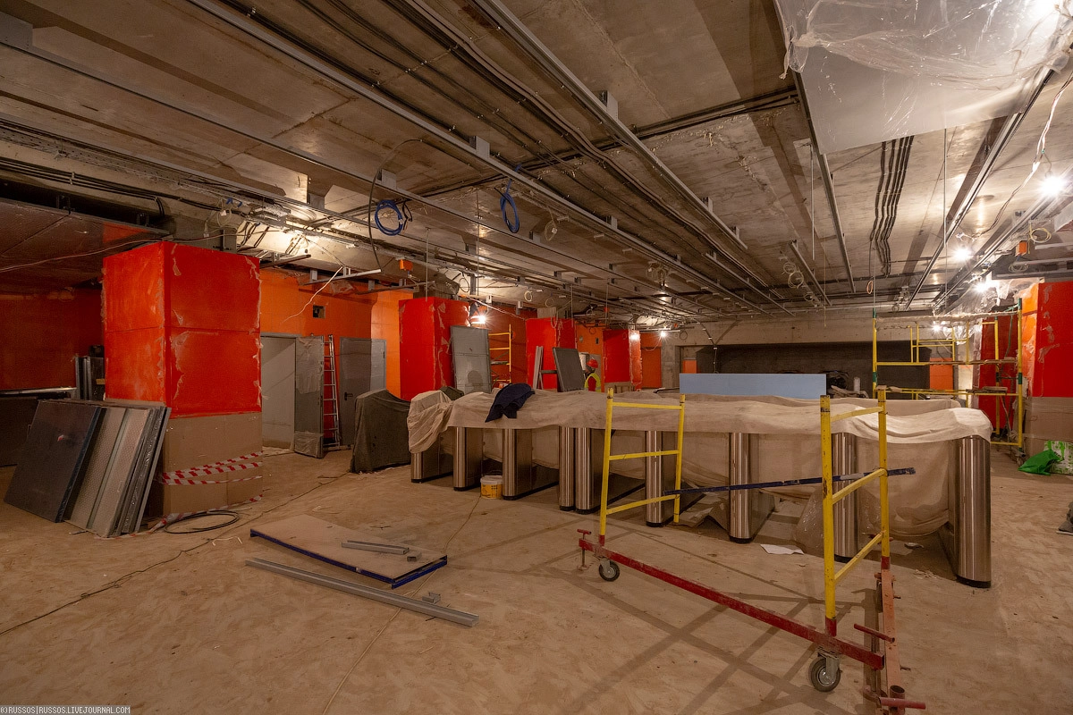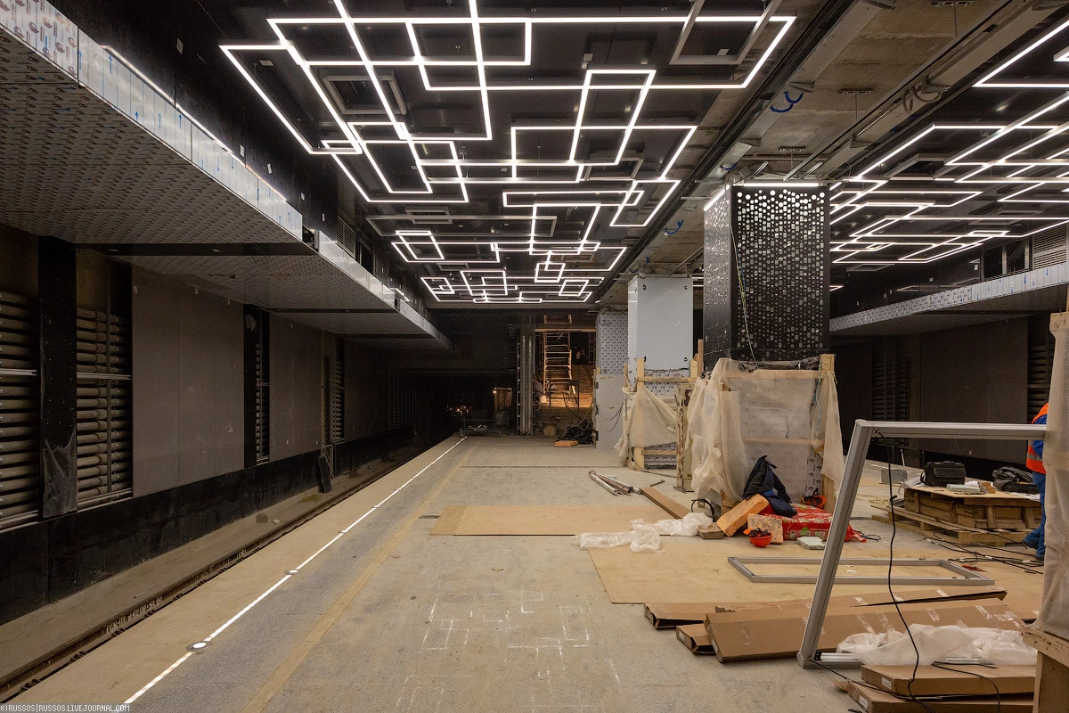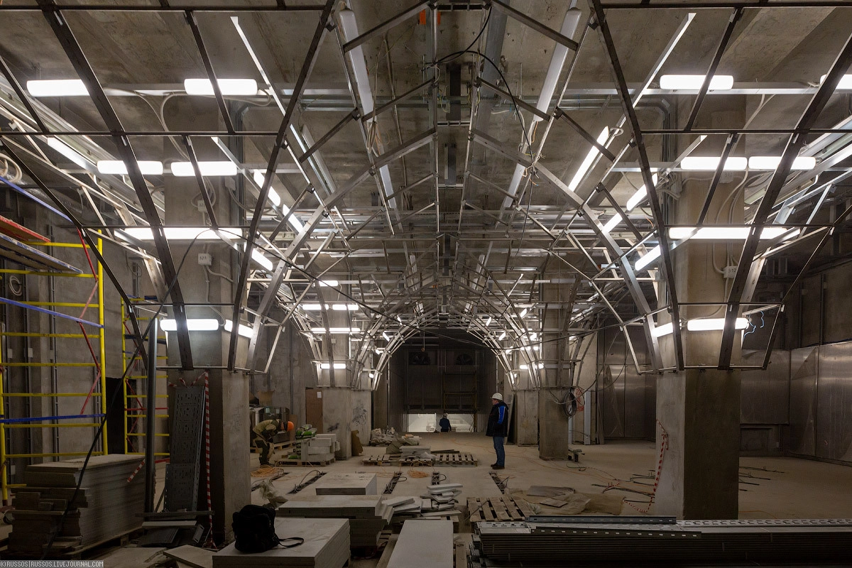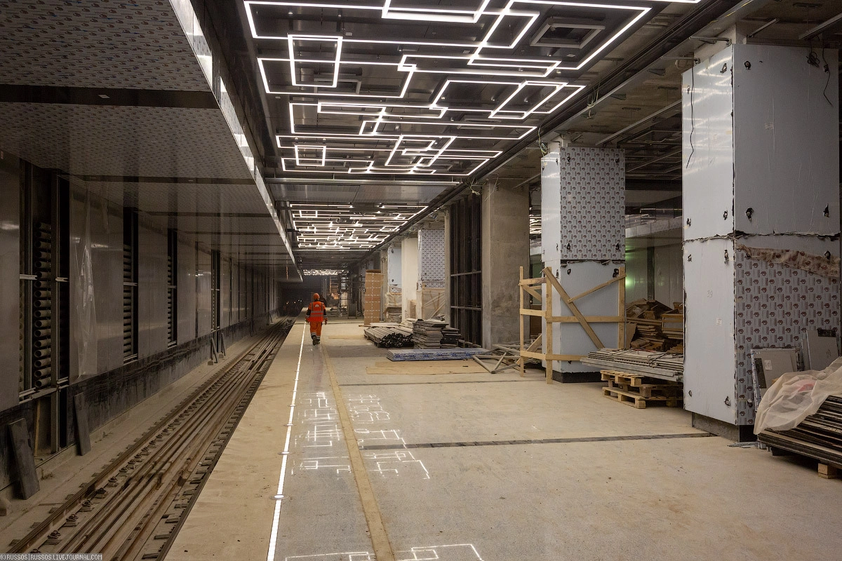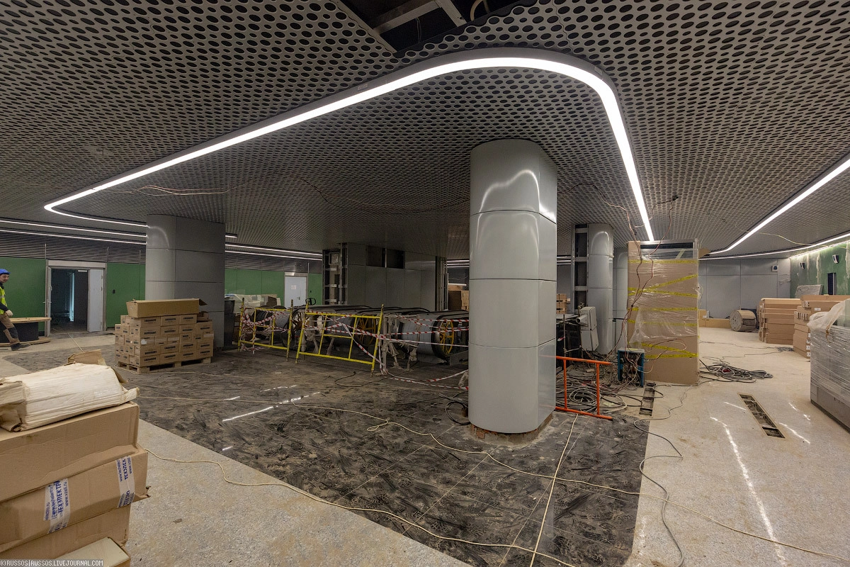 На станции во всю идет монтаж инженерных систем. К отделке только приступают по мере готовности фронта работ.
