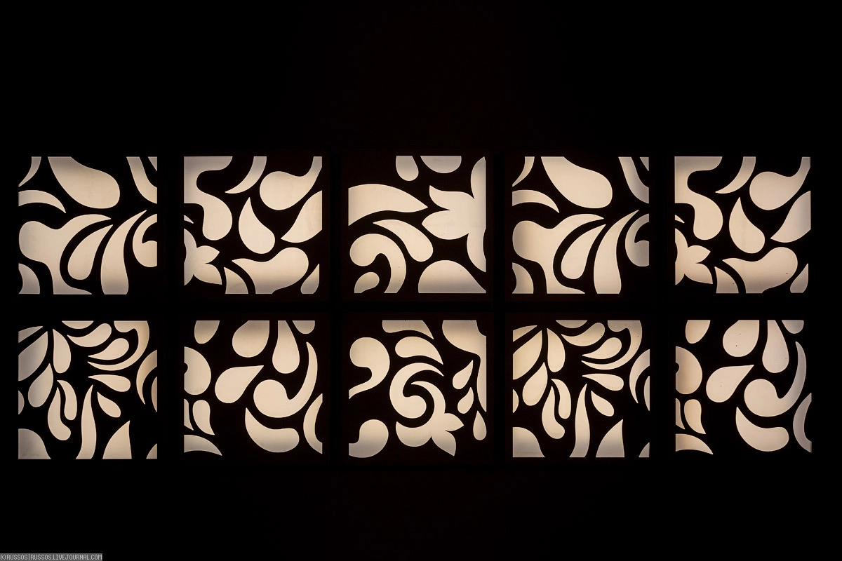 На светильниках при помощи перфорированных металлических панелей будут имитированы настенные росписи в виде травяных орнаментов.