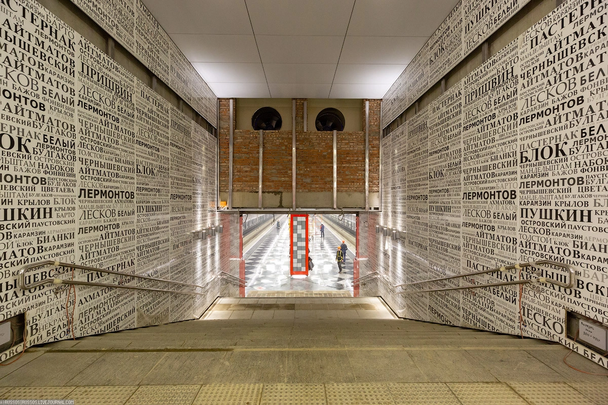 Путевые стены облицуют металлокерамическими панелями с рисунком в виде корешков книг.