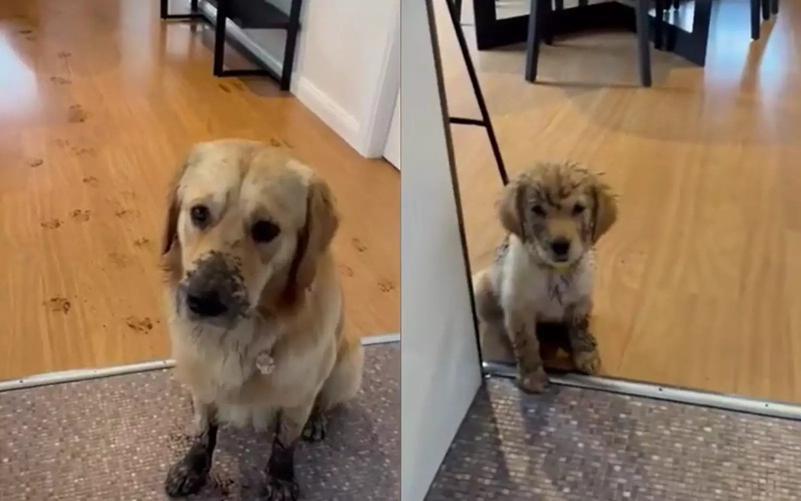 А вот хозяин двух грязнуль не слишком обрадовался тому, что они перепачкали весь дом. Теперь ему придется отмывать не только непослушных пёселей, но еще и пол сразу в нескольких комнатах.