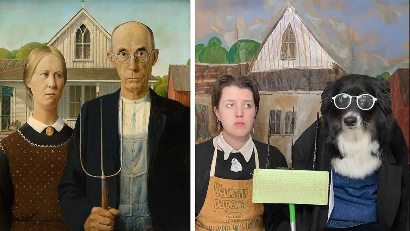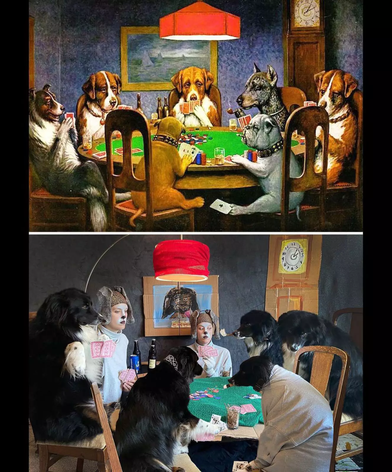 Веселое искусство: девушка и ее пес создают смешные копии знаменитых картин