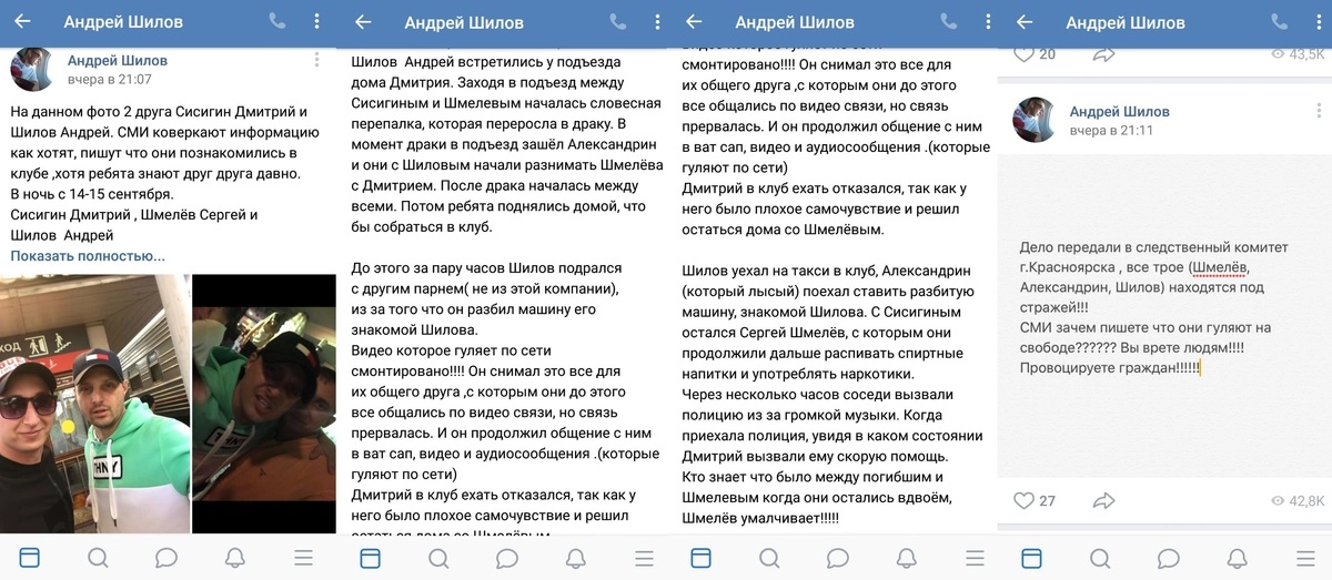 В свою очередь мать Андрея Шилова, экс-судья, рассказала журналистам местного Седьмого канала, что о возможной причастности сына к преступлению узнала из СМИ.