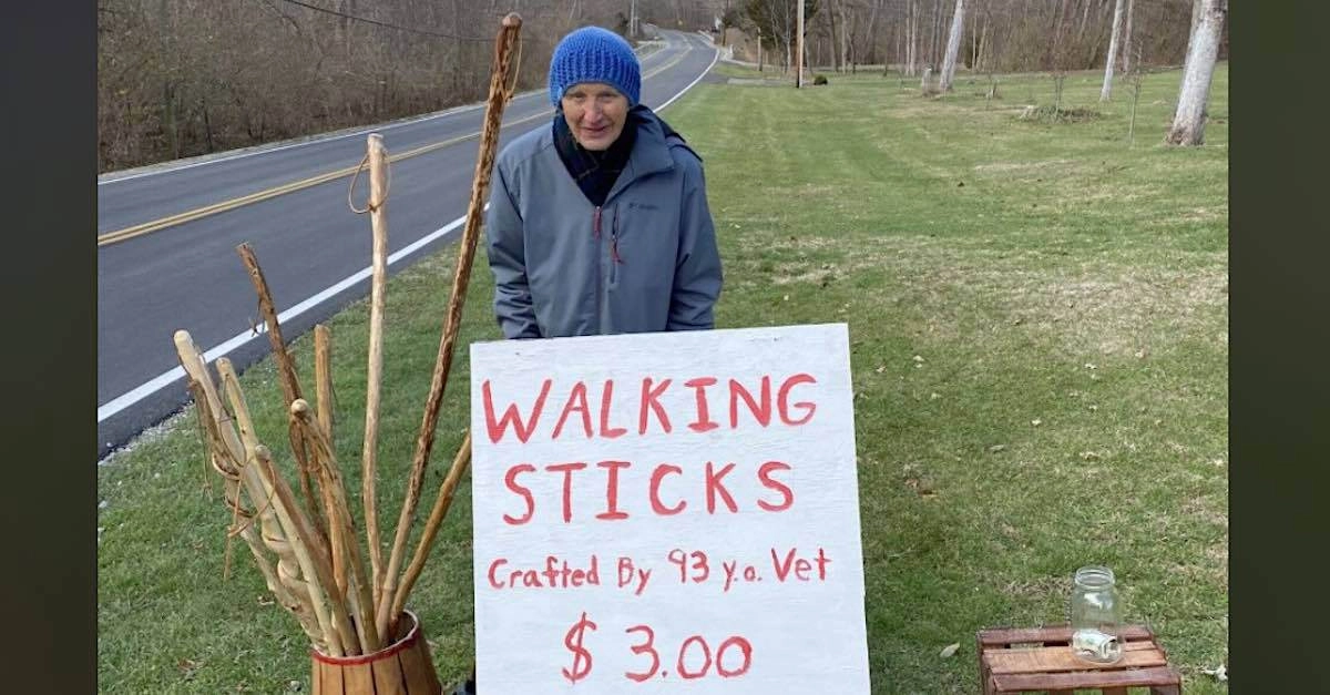В этом году ветеран организовал мини-производство тросточек для ходьбы, которые он стал продавать по три доллара (около 200 рублей) за штуку или за продуктовое пожертвование. Всего ветеран изготовил более сотни тросточек ручной работы.