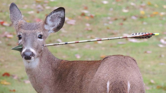 Как сообщают ветеринары, пятимесячного оленя нашли в лесах недалеко от Нью-Йорка, животное удалось поймать и госпитализировать. 10 ноября олень был успешно прооперирован. Несмотря на диаметр стрелы, жизненно важные органы и артерии животного задеты не были. Биологи полагают, что животное, скорее всего, выживет. Перед тем, как отпустить его на волю, ему вкололи антибиотики. Пока неизвестно, кто прострелил оленю голову.