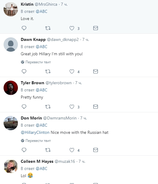 На странице телеканала в Twitter, где было размещено видео, большинство пользователей с юмором восприняли поступок Клинтон. Многим показался он забавным. Однако нашлись и ее ярые противники. Один из них написал: «Она опять пьяная. Не обращайте на нее внимания». А другой предположил, что Клинтон никогда не смирится со своим поражением.