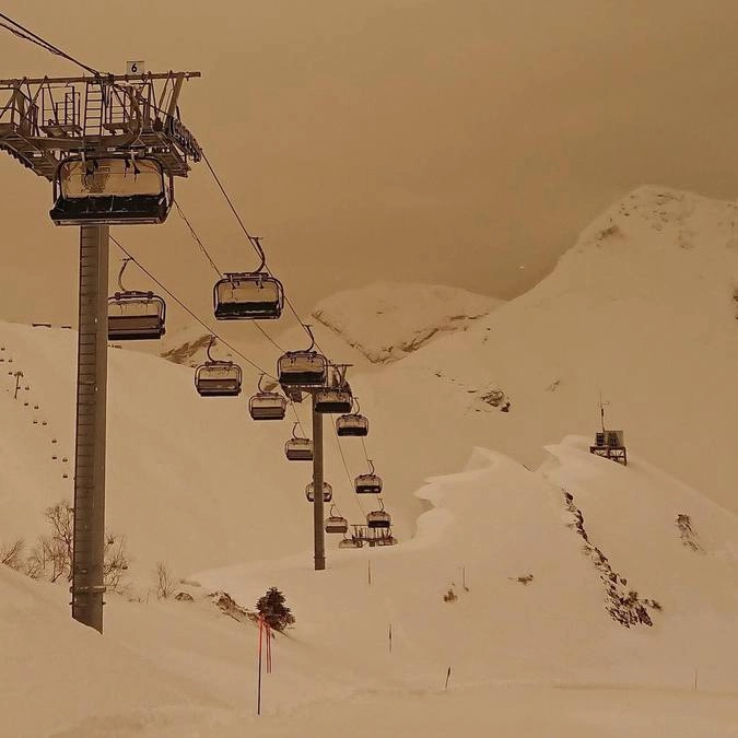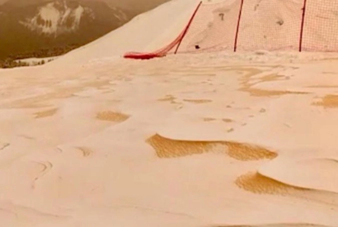 Фотографии засыпанного песком горнолыжного курорта «Роза Хутор» в Красной Поляне появились 23 марта в Instagram. Опубликовано также и видео, запечатлевшее необычное явление.