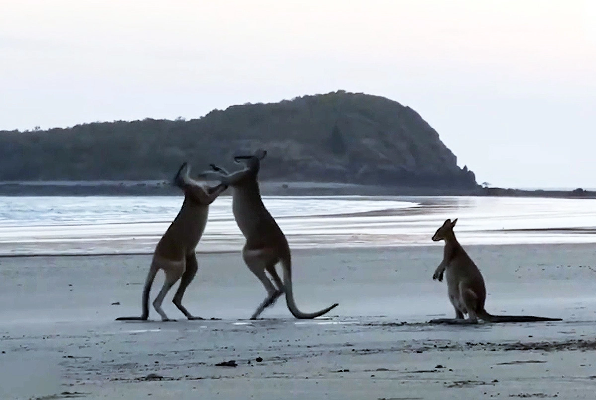 Ранее житель австралийского города Голд-Кост заснял на видео драку двух кенгуру, которые били друг другу по морде и, опершись на хвост, старались ударить противника в живот. Свидетель потасовки решил положить конец не прекращающейся схватке кенгуру. Он вышел из машины и призвал сумчатых прекратить драку. После его вмешательства животные скрылись в лесу.