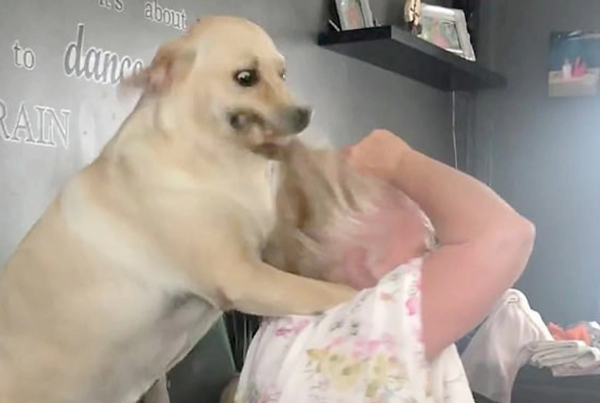 Видео: пес принял пучок на голове бабушки за своего врага и атаковал его