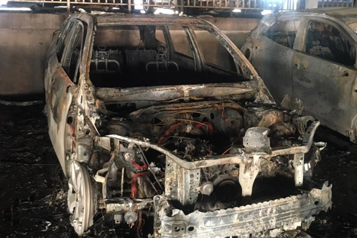 Видео: трое мужчин подожгли дорогой автомобиль на паркинге жилого комплекса