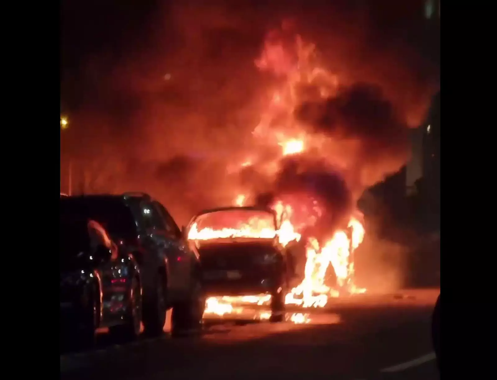 Видео: у «Москвы-Сити» одновременно вспыхнули два автомобиля