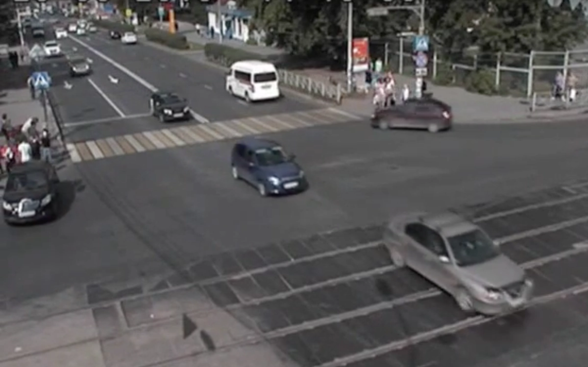 В Перми машина без водителя въехала задним ходом в толпу пешеходов на одном из городских перекрестков. Камера видеонаблюдения зафиксировала ДТП.