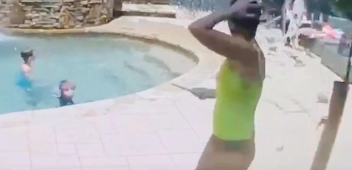 На кадрах видно, как женщина сидит в шезлонге у бассейна и читает книгу, а в это время раздается крик ее сына, купающегося в бассейне: «Беги, мама!».