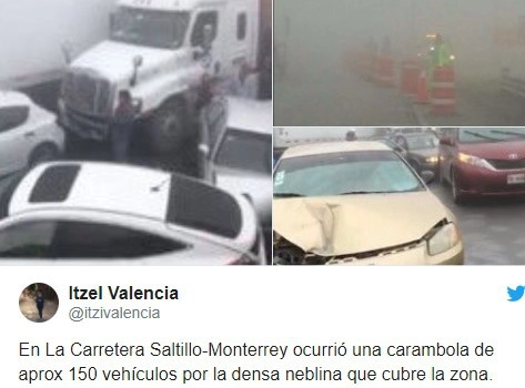Пользователи опубликовали в Сети фотографии и видеозаписи с места события, одна из участниц происшествия написала в Twitter, что «из-за густого тумана» на дороге столкнулись «примерно 150 автомобилей».
