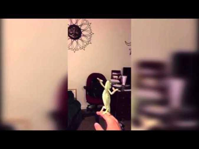Увидев, что хамелеон заинтересовался пузырями, Ник подвинул Лауру ближе - результат на видео.