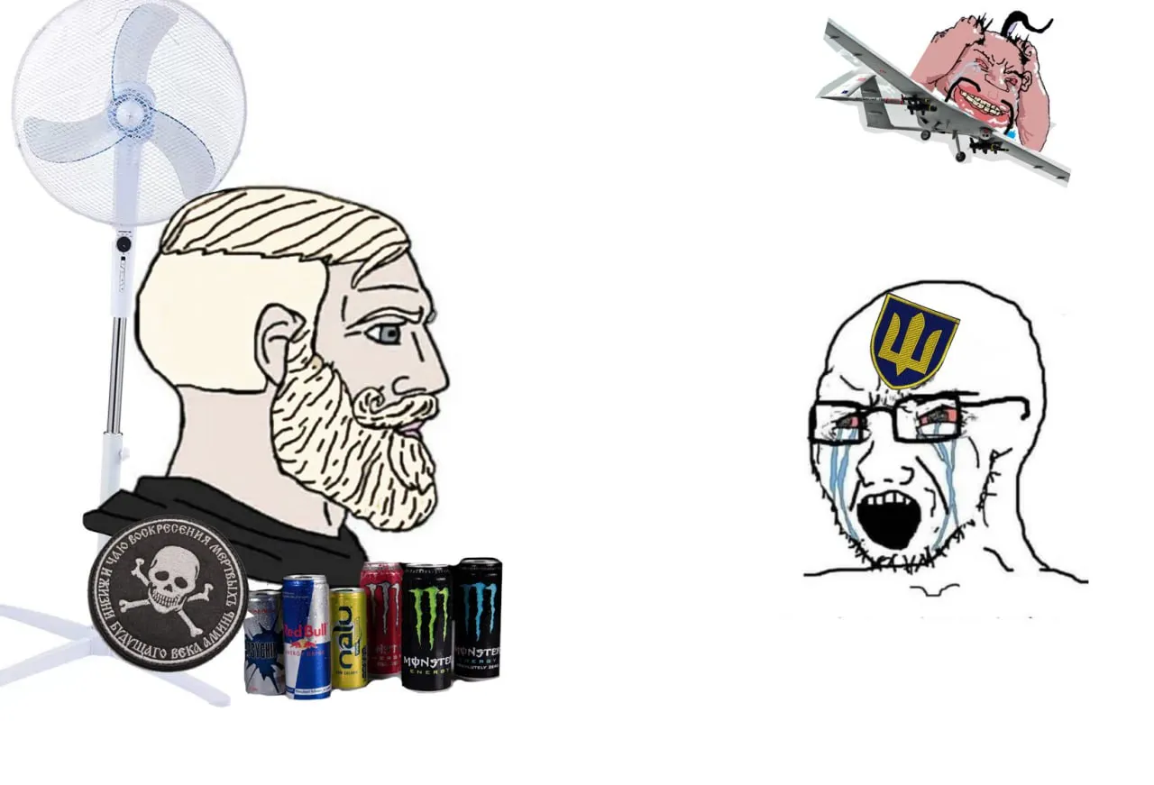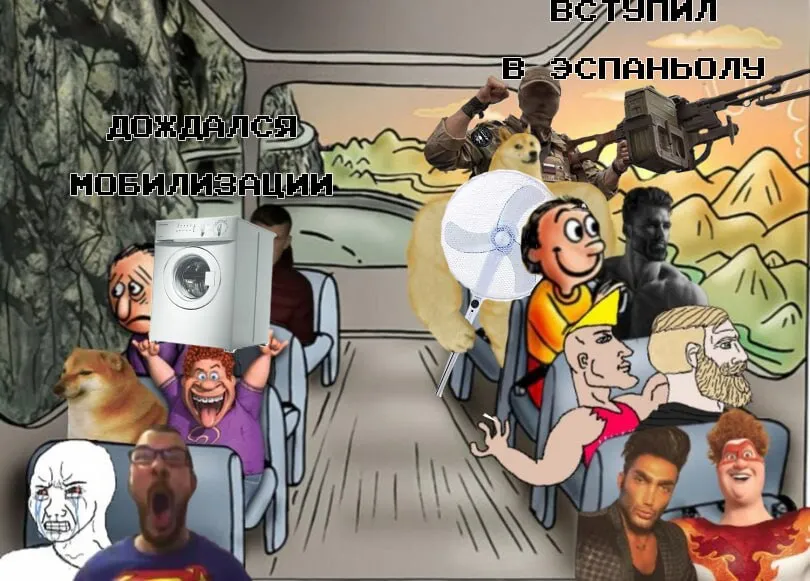 На кадрах видно, что один из бойцов «Эспаньолы», выбираясь из полностью разрушенного штаба, взял с собой всё, что уцелело, а именно вентилятор и две банки энергетика. Собственно, этот эпизод и породил мемы в Сети.