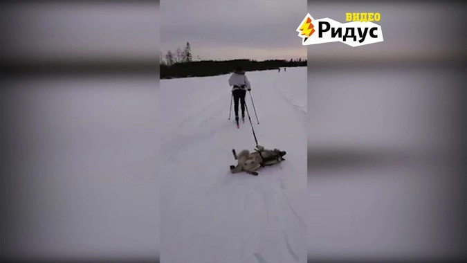 В Facebook всё больше просмотров набирает ролик с собакой, которая не хочет гулять вместе со своим хозяином. На кадрах видно, как хозяин-лыжник буквально тащит на поводке непослушное животное. Вместо того чтобы бежать рядом, пес просто лежит на спине и получает удовольствие.