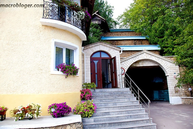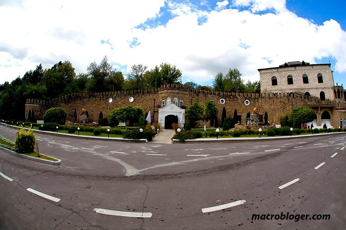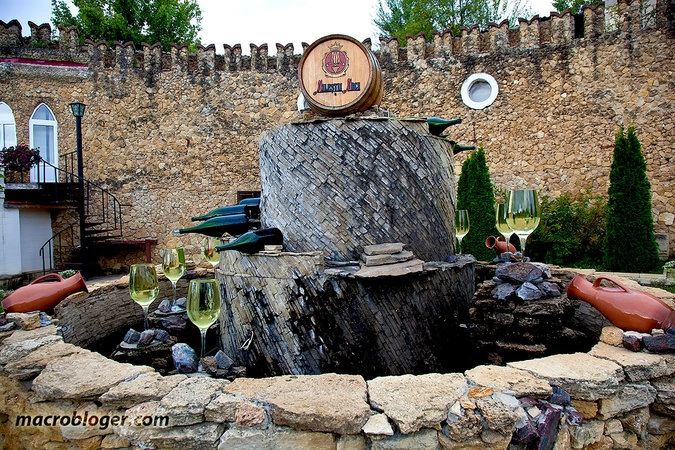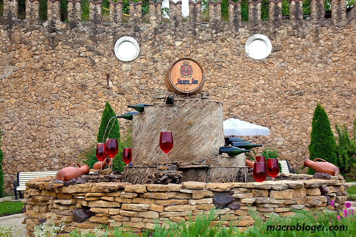 Пришлось надевать широкоугольник, чтобы захватить весь двор с красивейшими фонтанами красного и белого вина.