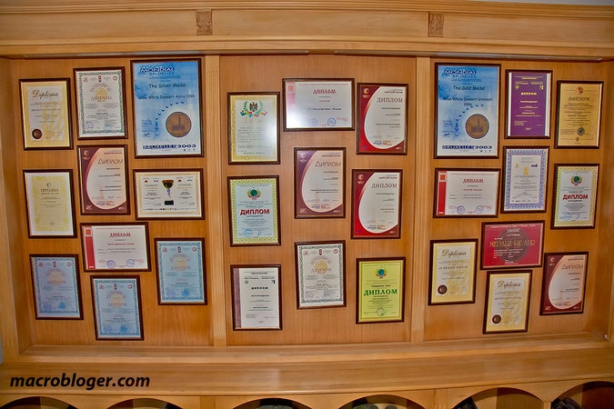 И висели дипломы. Почти все они на русском языке. То есть выданы ещё в советское время. Гораздо больше фотографий можно увидеть здесь - http://macrobloger.com/kraj/moldova/vinnye-podvaly-moldovy-mileshtij-mich.html