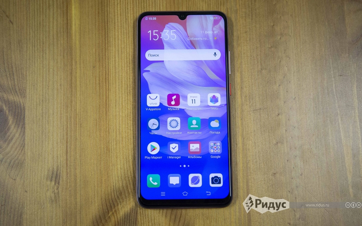 Vivo V17 обладает Super Amoled дисплеем. Эта матрица позволяет отображать насыщенный по-настоящему черный цвет, а также яркие краски. Диагональ экрана составляет 6,38 дюймов. За счет тонких рамок смартфон по габаритам идентичен Redmi Note 7, который имеет 6,3-дюймовый дисплей. Разрешение экрана составляет FullHD+ - стандарт не только для моделей среднего класса, но и для флагманов. Экран яркий, под прямыми солнечными ведет себя очень хорошо. Минимальная яркость также комфортна.