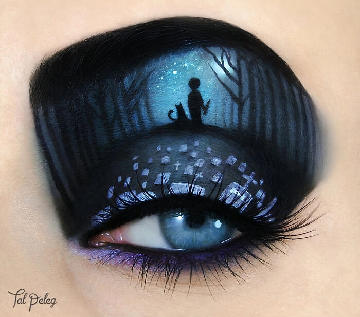 Я всегда любила искусство и макияж, поэтому рисование на глазах было моим способом смешать эти две страсти. Я использую веко как холст, чтобы рассказывать истории и вдохновлять людей, — сказала Тал Пелег в интервью ресурсу Bored Panda.
