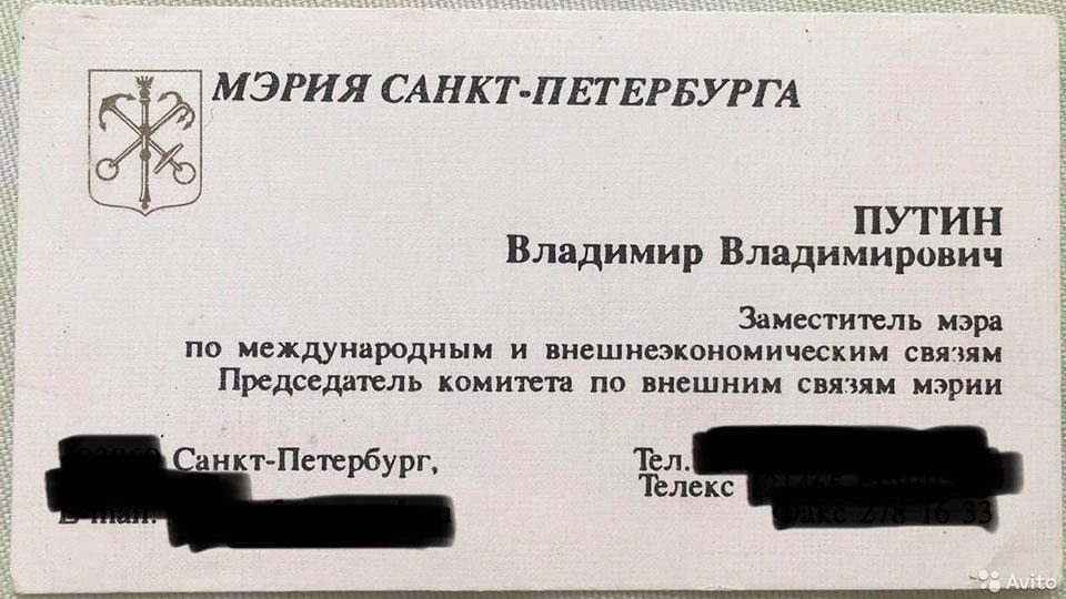 На визитке указана должность Владимира Путина в те годы — заместитель мэра по международным и внешнеэкономическим связям, председатель комитета по внешним связям мэрии, а также его контактные данные, передает телеканал «360».