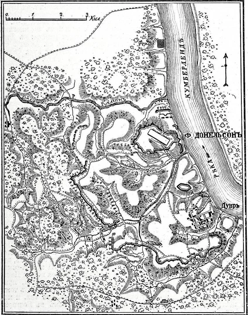 Генерал Бакнер был более пессимистичен: он уже знал, что накануне противник получил сильные подкрепления. В полночь в городке Дувр началось очередное совещание, на котором присутствовали Флойд, Пиллоу, Бакнер, Форрест и несколько штабных офицеров (генерал Джонсон отсутствовал, так как находился в войсках), продолжавшееся не менее двух часов с перерывами.