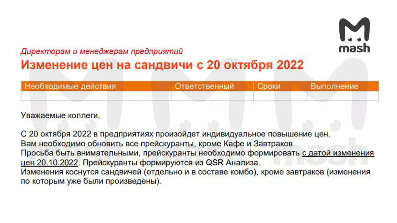 В правопреемнице «Макдональдса», общепите «Вкусно — и точка» с 20 октября повысят цены на бургеры на 7−10%, хотя с открытия обновленной сети прошло всего через четыре месяца. Такая информация появилась у Telegram-канала Mash. Причиной повышения цен стал рост себестоимости продуктов.