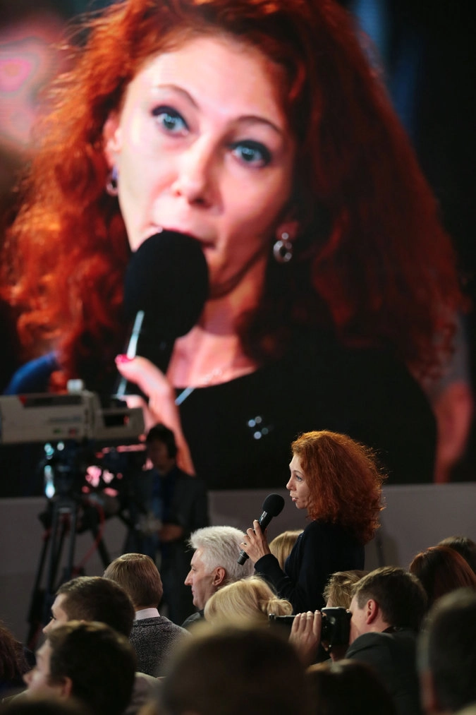 Корреспондент Газеты.ру Наталья Галимова задает вопрос президенту России Владимиру Путину. © Михаил Метцель/РИА Новости