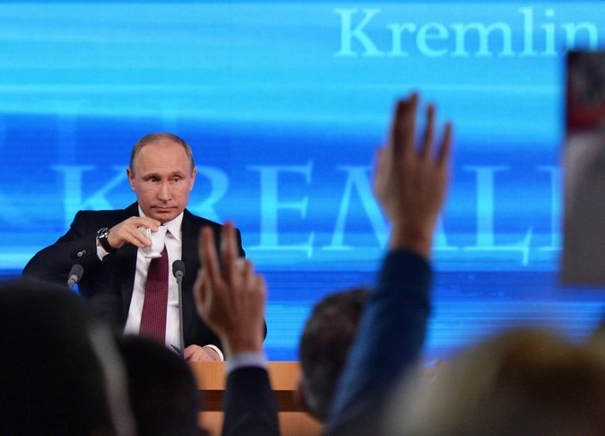 Президент России Владимир Путин отвечает на вопросы журналистов на большой ежегодной пресс-конференции. © Михаил Метцель/РИА Новости