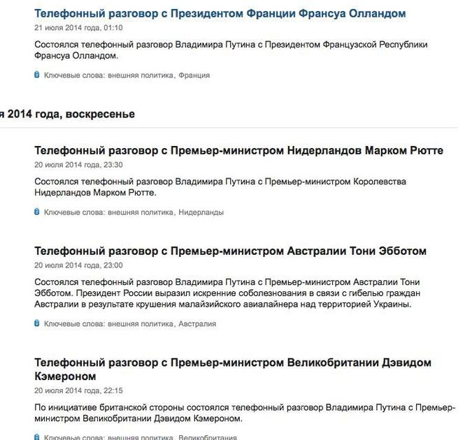 В связи с ужасными трагическими событиями, которые произошли в небе над Донецком, хотел бы еще раз сказать о том, как мы в России относимся к событиям, которые происходят сегодня на Украине. Мы неоднократно призывали все противоборствующие стороны немедленно прекратить кровопролитие и сесть за стол переговоров. С уверенностью можно сказать, что если бы 28 июня боевые действия на востоке Украины не были возобновлены, то и этой трагедии наверняка бы не произошло.