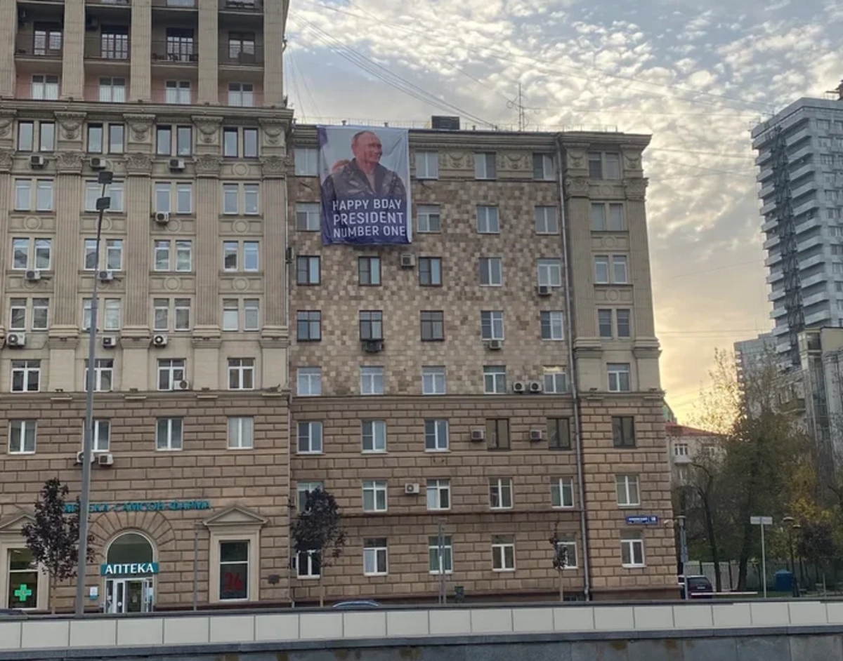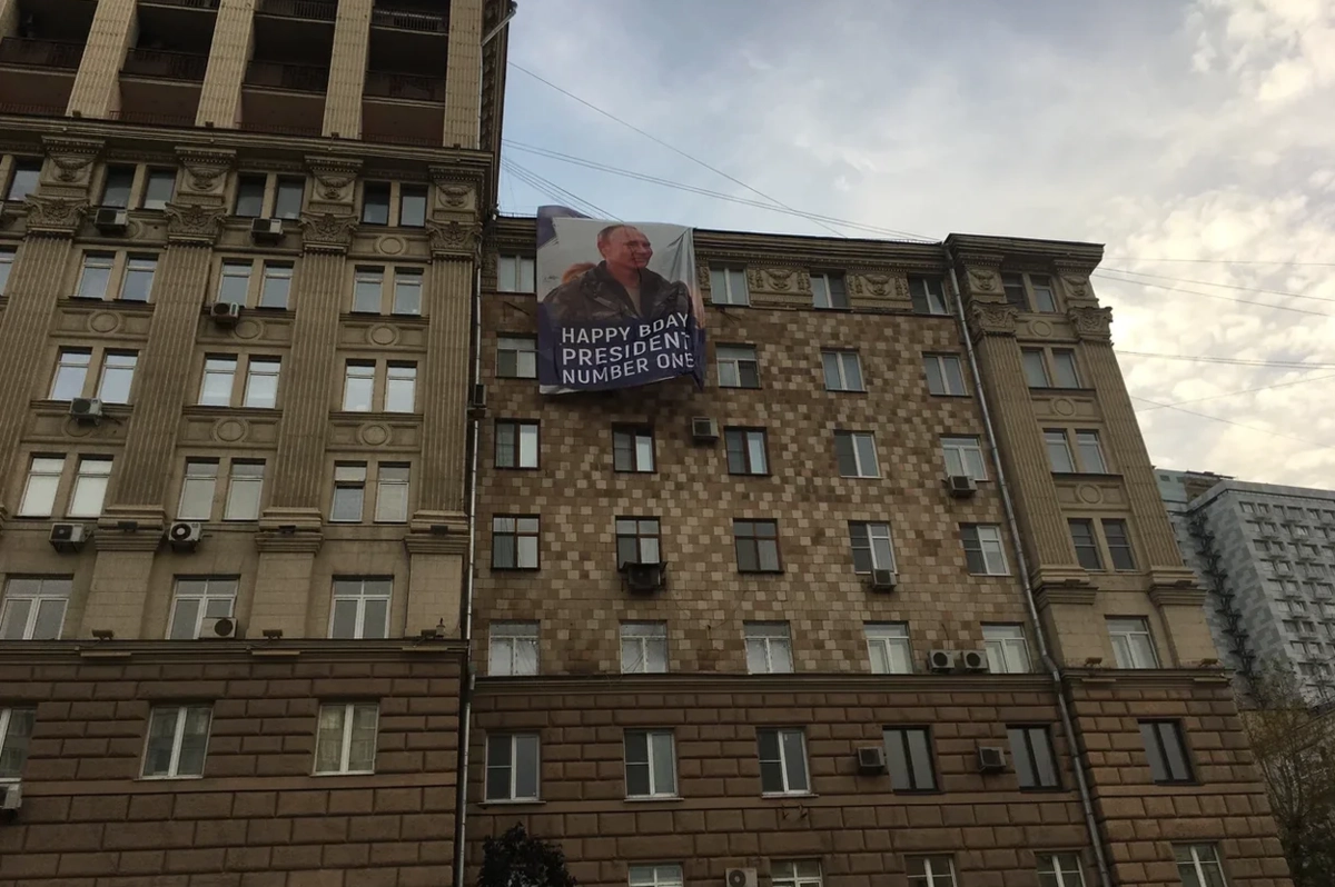 Владимира Путина поздравили с днем рождения огромным банером в Москве