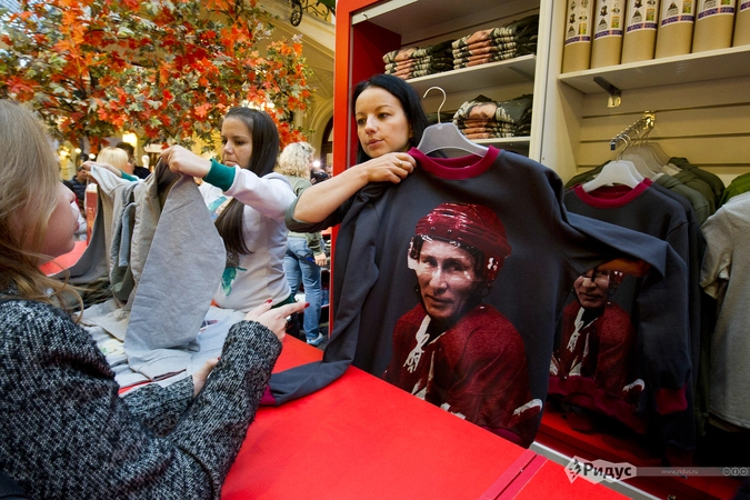 Поздравили главу государства и молодежные дизайнеры, представив коллекции одежды, посвященные победам России и Владимира Путина. В торговом комплексе ГУМ молодые российские дизайнеры Анна Ефремова и Владимир Ершов возобновили продажу коллекции «Все путем»: на этот раз нашумевший дизайнерский дует ANYAVANYA предложил россиянам коллекцию теплых толстовок с портретами президента.