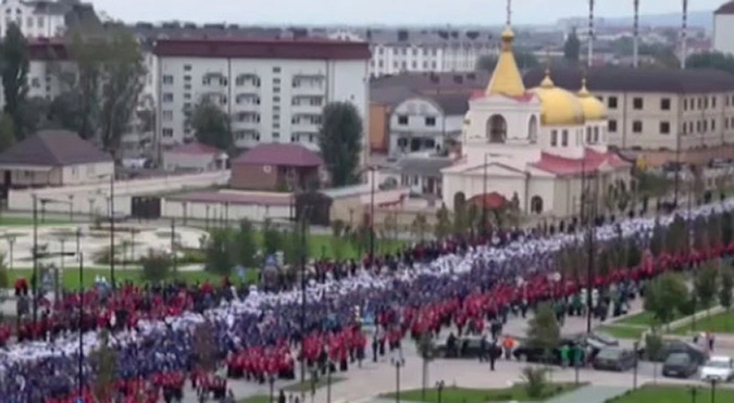 Жители Чеченской республики побили мировой рекорд по созданию самого большого «живого» государственного флага страны, празднуя день рождения президента России. Как утверждает глава региона Рамзан Кадыров, длина флагов России и Чечни превысила 2 тысяч метров, а приняли участие в этой акции более 100 тысяч юношей и девушек. «Они выразили поддержку президенту России Владимиру Путину и поздравили его с днем рождения», — написал он в Instagram.