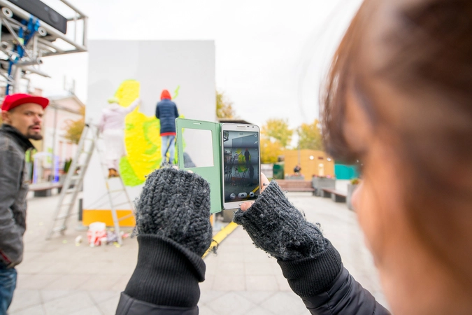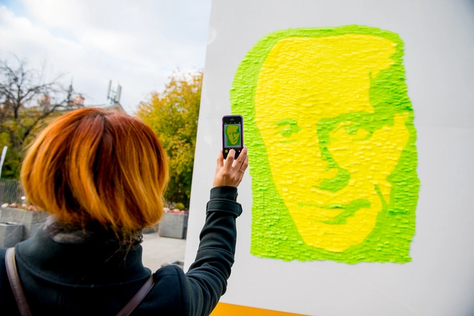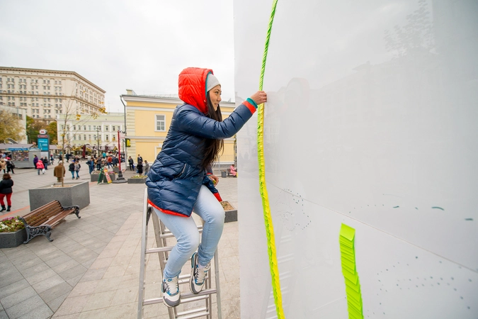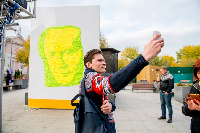Около станции метро Третьяковская, вдоль улицы Большая Ордынка, была возведена конструкция размером три на четыре метра, на которой молодые люди выложили портрет президента бумажными самоклеющимися стикерами разных цветов. Созданием инсталляции активисты занимались с раннего утра.