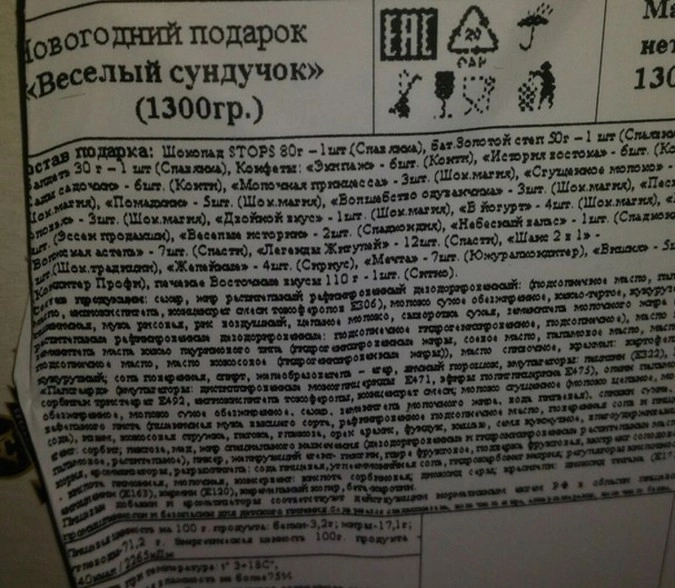Ни одной хорошей конфеты! Впервые за все годы, что посещаем елку мэра, такой подарок. Спасибо Вам, дорогой Сергей Владимирович, за подарок! Ешьте такие конфеты сами!