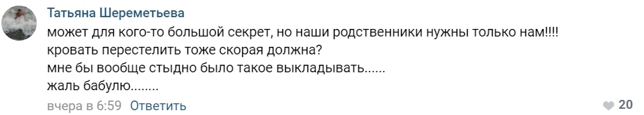 Тем не менее некоторые пользователи ее осудили за этот ролик и выразили мнение, что бабушке нужен хороший уход, а не скорая помощь.