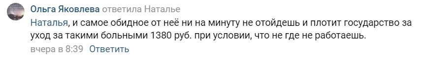 Постоянно смотреть, как мучается родной человек, не получая при этом помощи, — тоже тяжело. Это уже отчаяние, — написала Анастасия.