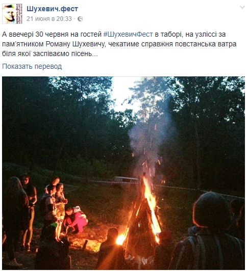 А вечером 30 июня гостей ШехевичФеста в лагере, на опушке за памятником Роману Шухевичу, будет ждать настоящий повстанческий костер, возле которого споем песни… / Скриншот