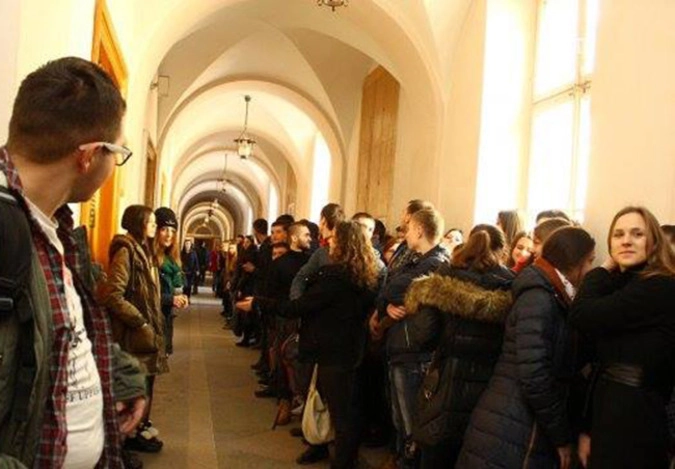 Накануне для этой акции собрались студенты разных курсов этого западноукраинского храма науки и культуры.