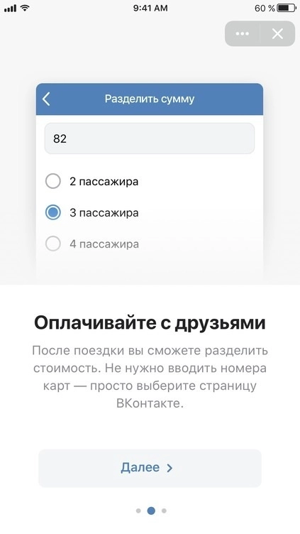 Запуск сервиса на базе VK Mini Apps позволил реализовать функции, связанные с соцсетью. Так, можно разделить чек поездки на несколько пользователей или выбрать пунктом назначения адреса, указанные в сообществах. Возможности сервиса будут расширены будущими обновлениями.