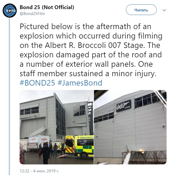 Во время съемок фильма о Джеймсе Бонде произошел взрыв. Есть пострадавший