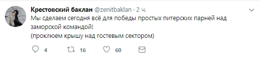 Оперативно был создан Twitter-аккаунт «Крестовский баклан», который ведется от имени пернатого «негодяя». К примеру, сегодня он пообещал помочь «Зениту» победить «Утрехт» из Нидерландов.