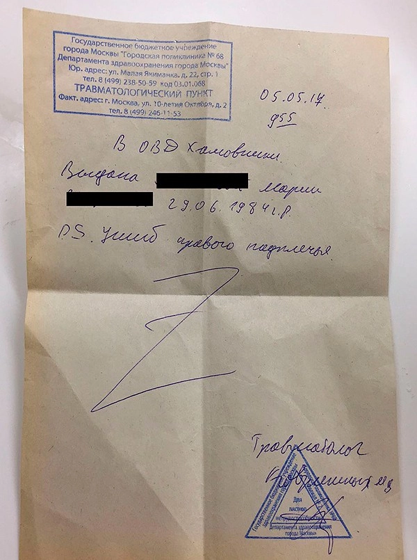 Оправившись немного от шока, Мария обратилась в правоохранительные органы, а также зафиксировала в травмпункте побои. У нее ушиб правого предплечья.