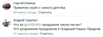 Немалой части пользователей Рунета дети, веселящиеся под слегка хулиганские куплеты о спиртном, показались типичным примером «скрепной» дикости в России.