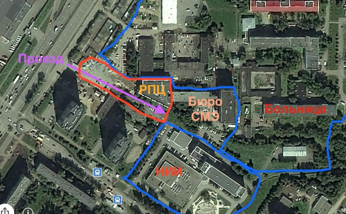 Именно там находится здание похоронного дома «Вознесение», а также городская клиническая больница № 40 и Институт микрохирургии глаза. Все эти строения плотным кольцом окружили здание бюро судебно-медицинской экспертизы Екатеринбурга, а затем одновременно закрыли к нему свободный проезд по своей территории.